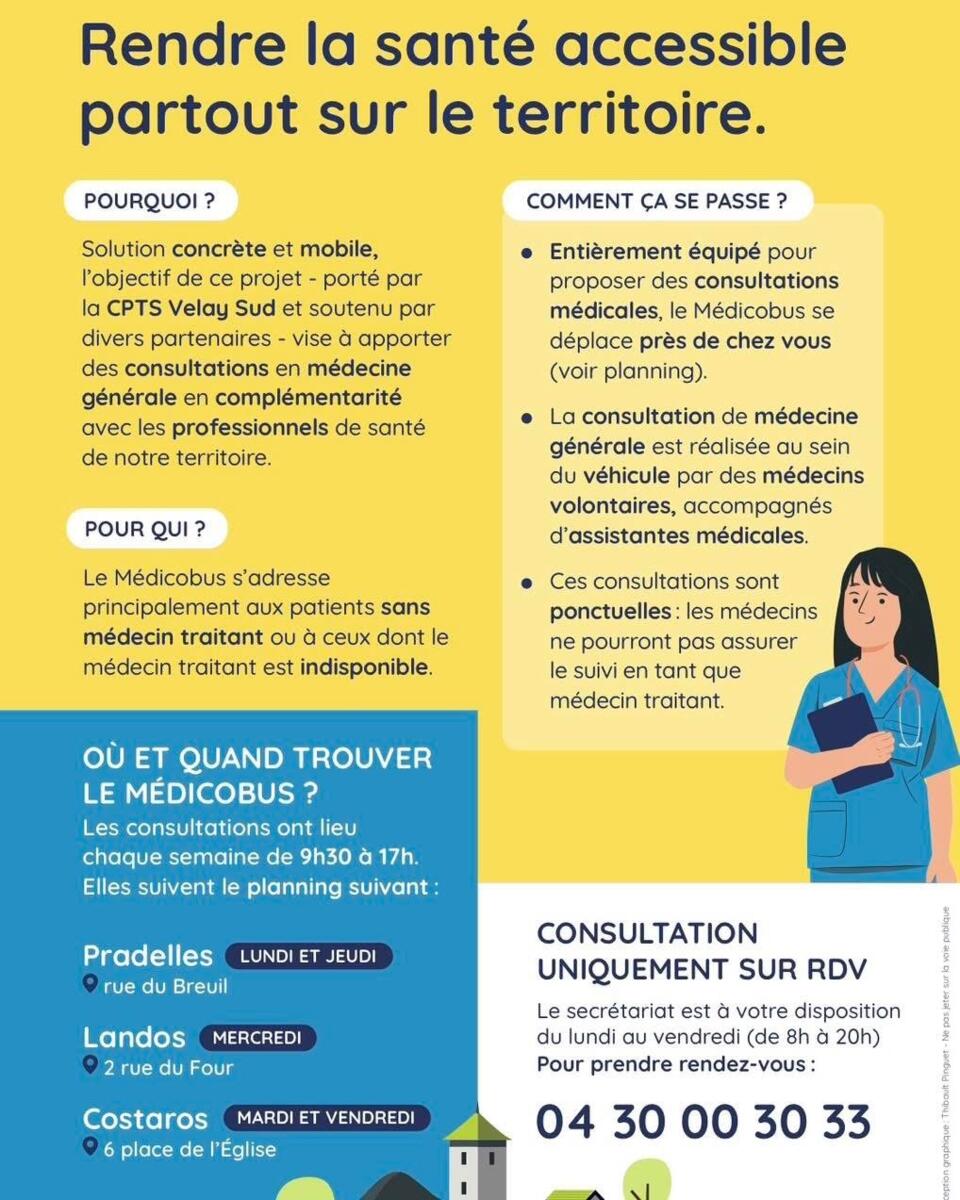 ℹ️Le Médicobus sera présent sur Costaros tous les mardis et vendredis devant la Maison de services sur la place de l’Eglise.