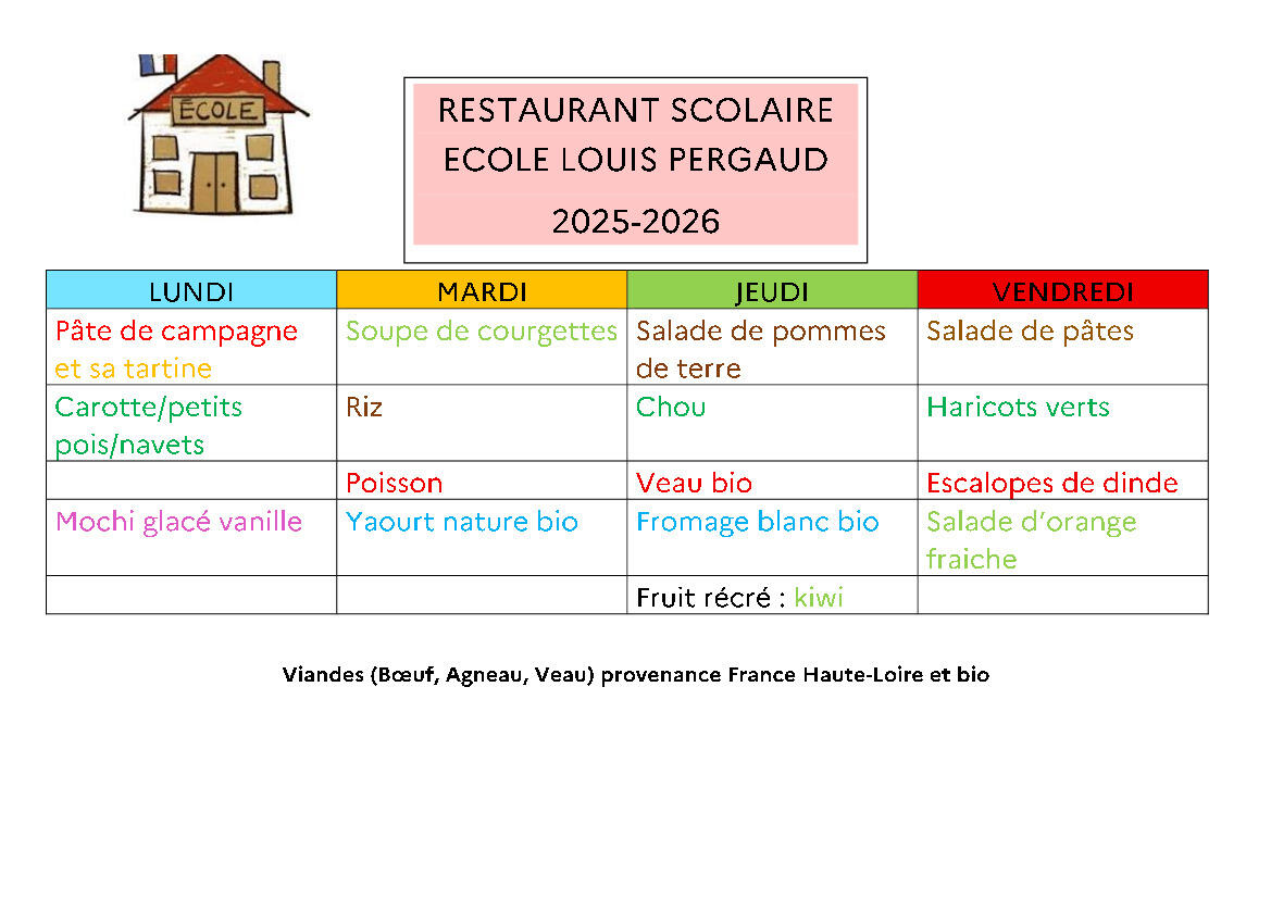 🍽 Menu du restaurant scolaire 27/11/2025 Menu du 1 au 5 décembre inscription avant ce soir minuit Source : Mairie de Cussac-sur-Loire