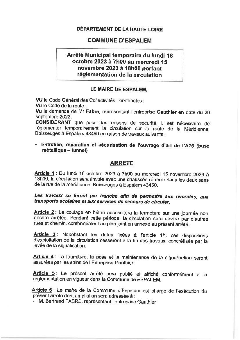 Arrêté de circulation RN88