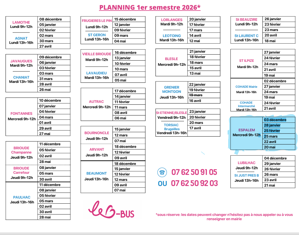 B-BUS à votre service! 19/03/2026 Retrouvez les coordonnées du B-BUS et dates et horaire de passage dans chaque commune de la CCBSA