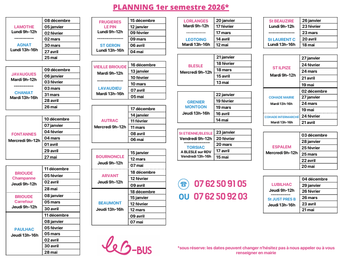 Votre mairie / Actualités / B-BUS date du 1er semestre 2026