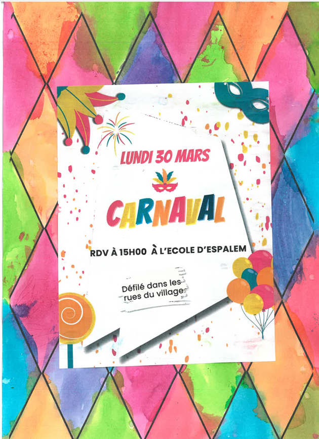 Votre mairie / Actualités / Carnaval de l'école le lundi 30 mars à 15h