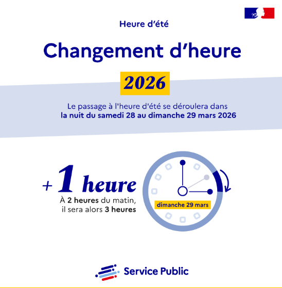 Votre mairie / Actualités / Horaire d'été du 28 au 29 mars 2026