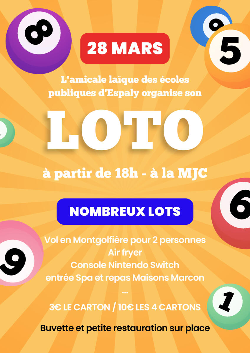 LOTO AMICALE LAIQUE - 28 MARS 12/03/2026 Le 28 mars 2026 à partir de 18h à la MJC. 3€ le carton - 10€ les 4