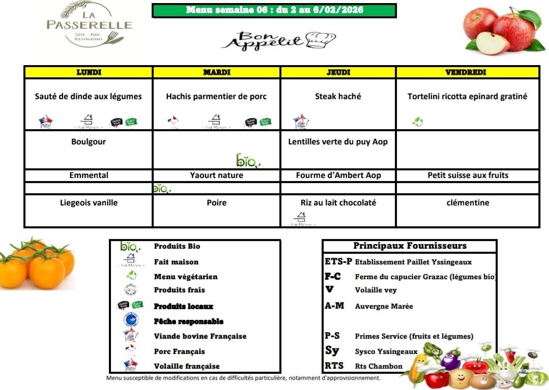 Cantine Scolaire: Menu . 30/01/2026 Voici le menu de la Cantine de la Semaine 06 de notre école St Joseph. Bon appétit ! Source : Mairie de Grazac