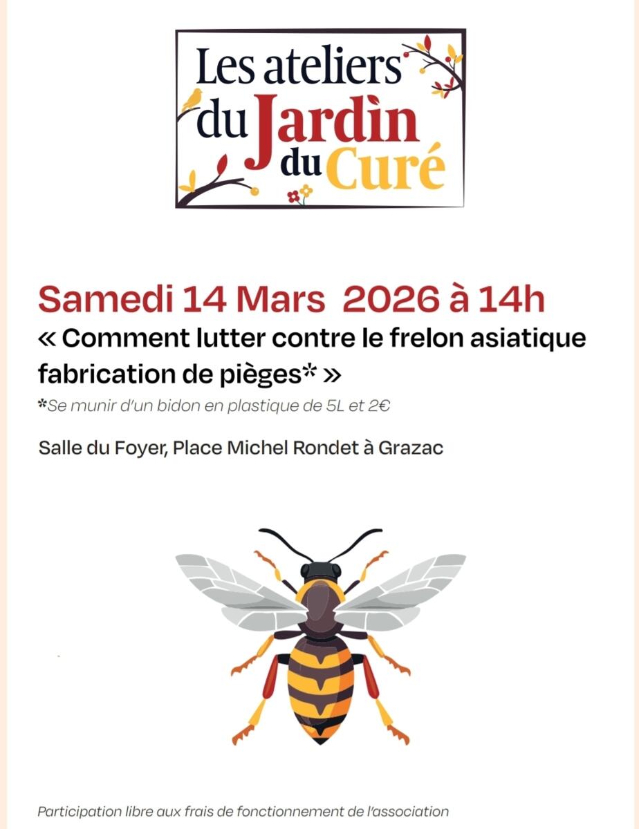 Association "Le Jardin Du Curé": Frelons Asiatiques 🐝🐝 02/03/2026 🐝🦟L' association « Le Jardin du Curé » réouvre ses portes pour un atelier : Atelier pièges Frelons à la salle du foyer place Michel Rondet à Grazac .🐝🐝🦟🪰