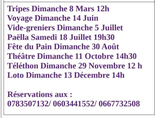 Calendrier 2026 Comité des Fêtes de Jax