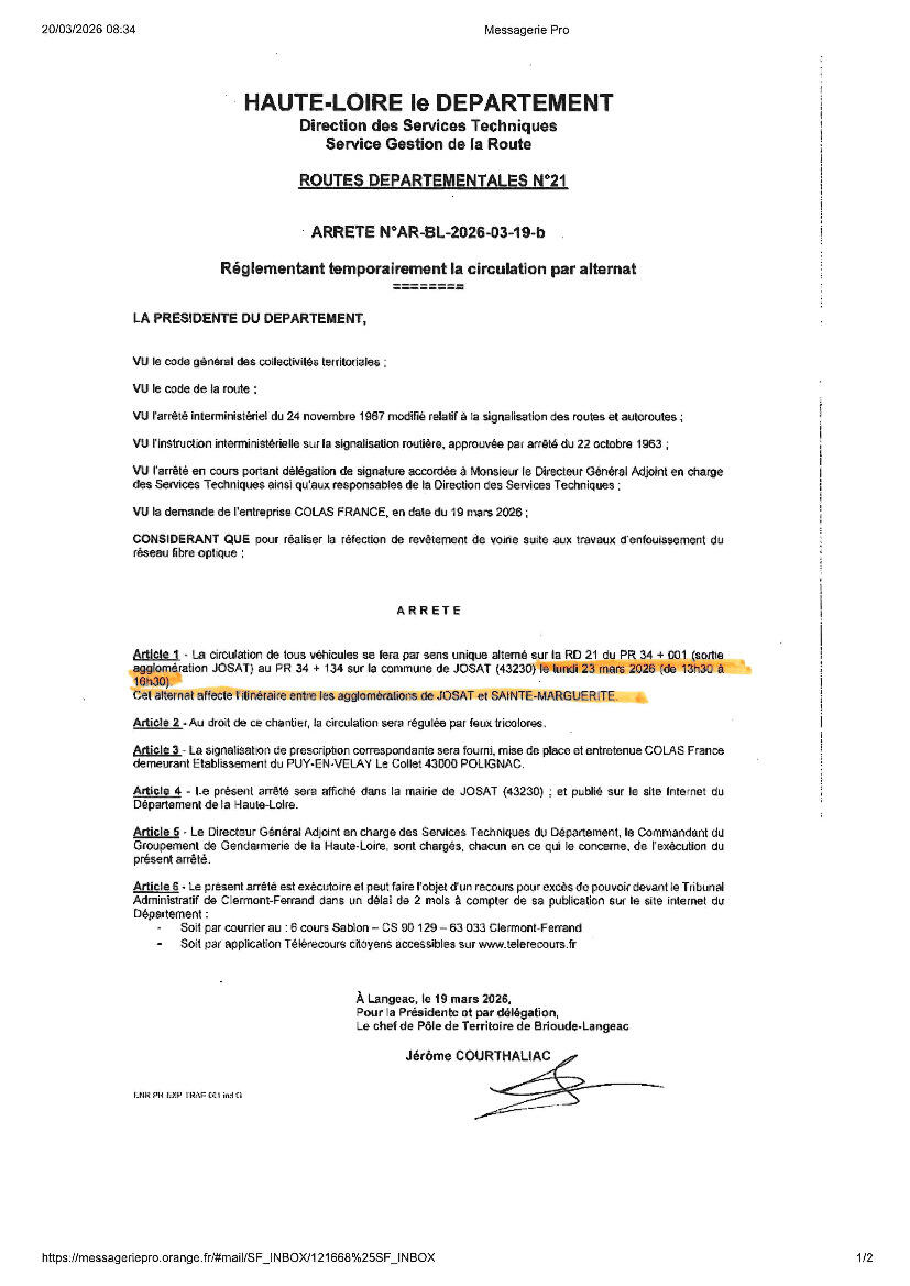Toute l'actualité de Mairie de Josat