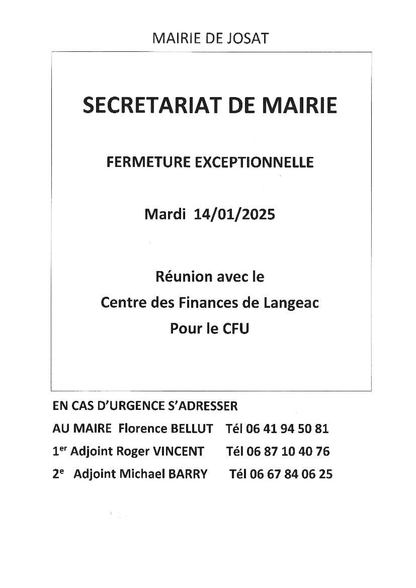 Votre mairie / Actualités / SECRETARIAT DE MAIRIE