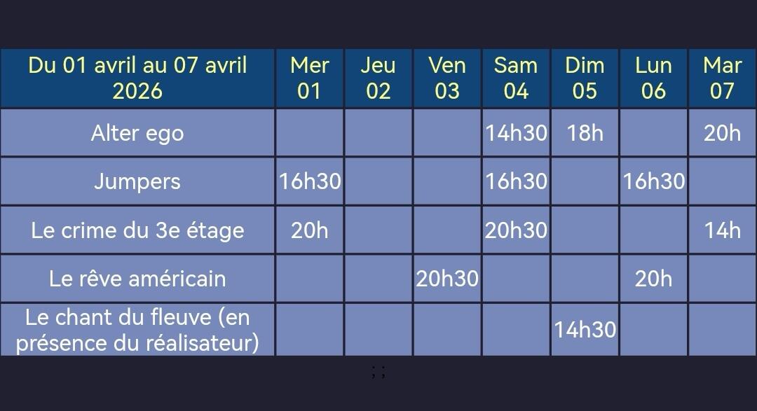 Programme d'AureCinéma du 1er au 7 avril.