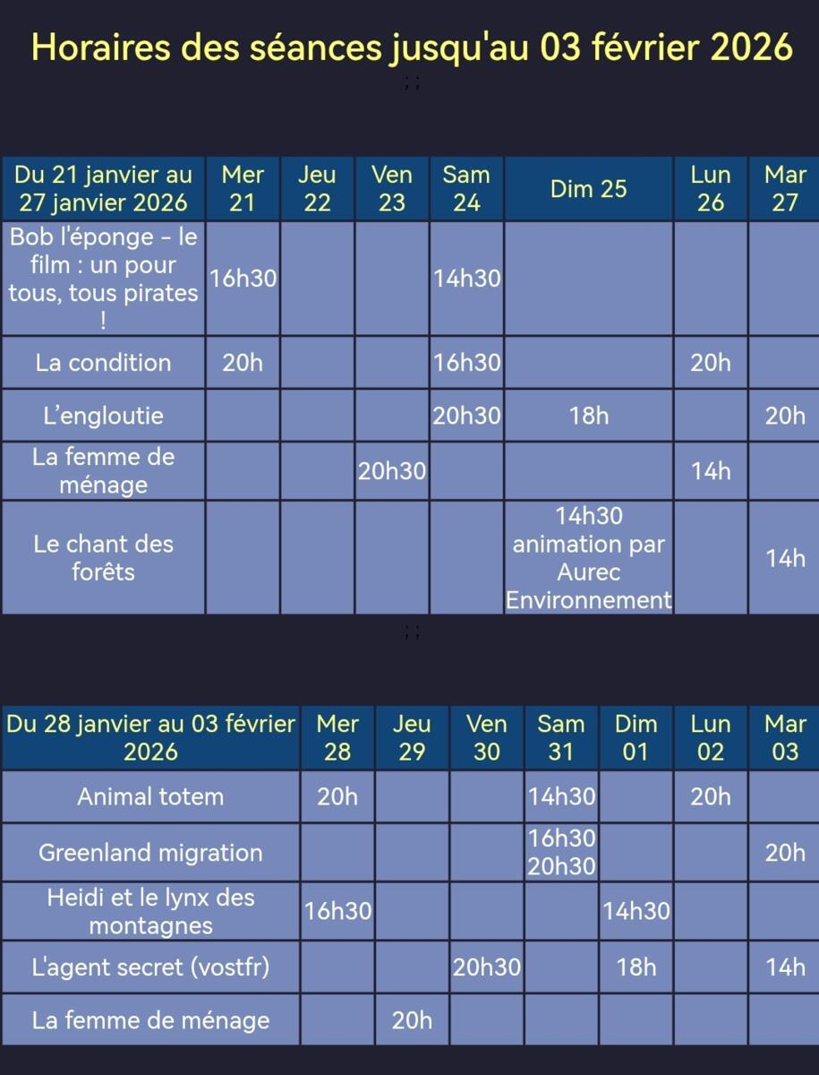 Programme d'AureCinéma jusqu'à 3 février