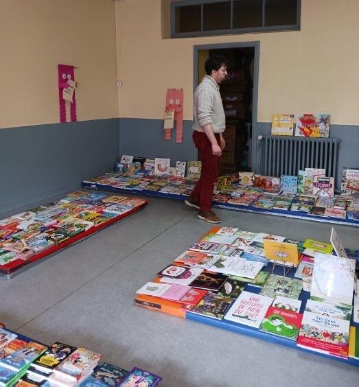 Ce lundi 16 mars La librairie des Pages du Château a mis en place une exposition-vente de livres à l'école Arc en Ciel de la Séauve sur la demande de son directeur Frédéric Grillet.