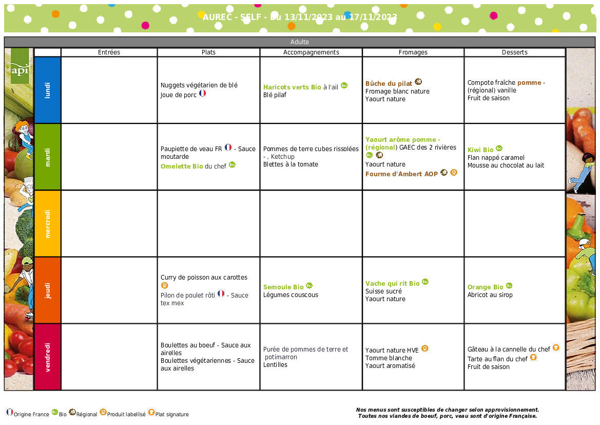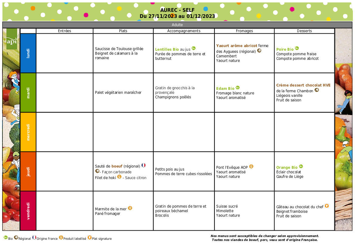 Menus du 05 au 09 Janvier 2026 .