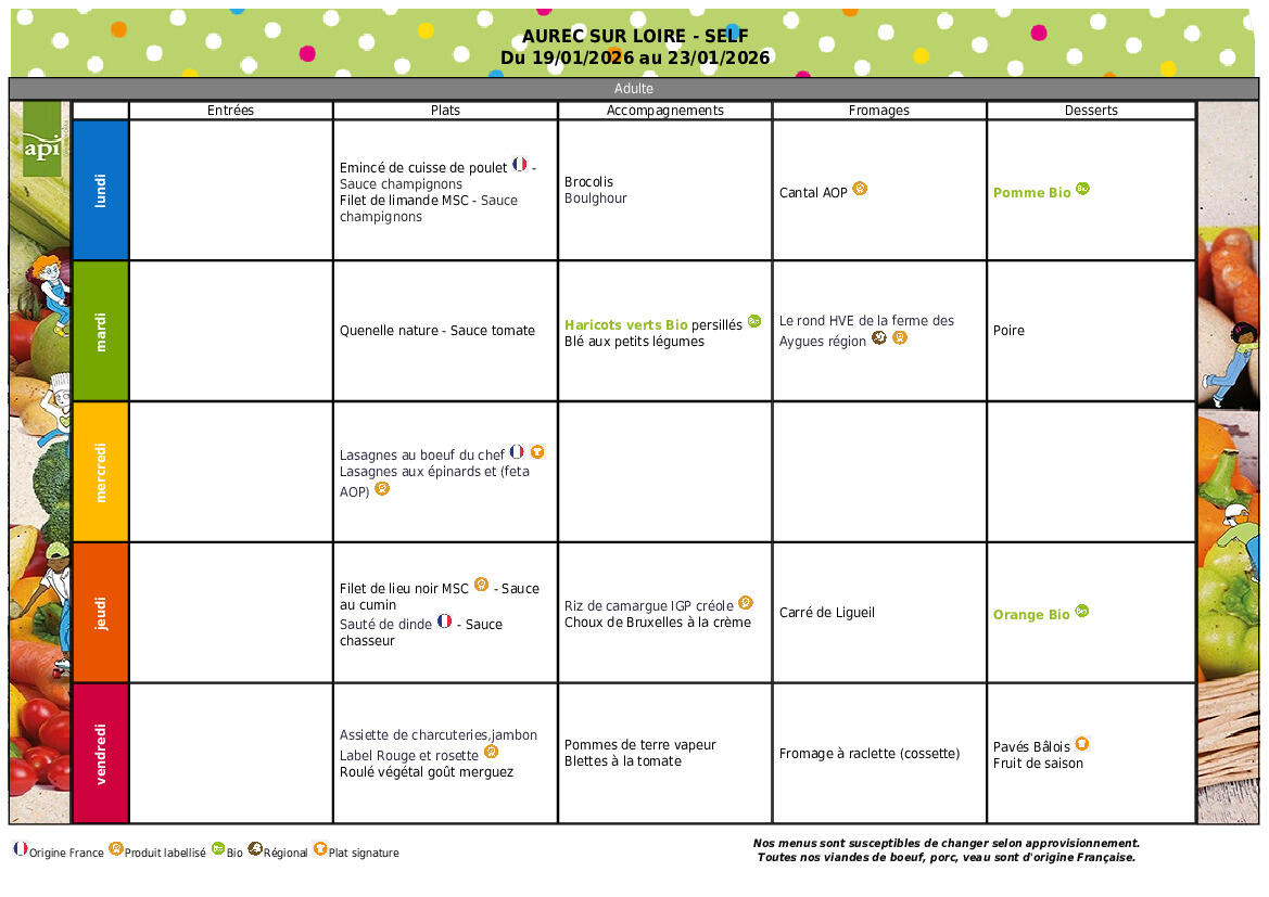 PS : Les menus des élémentaires et maternelles sont identiques.