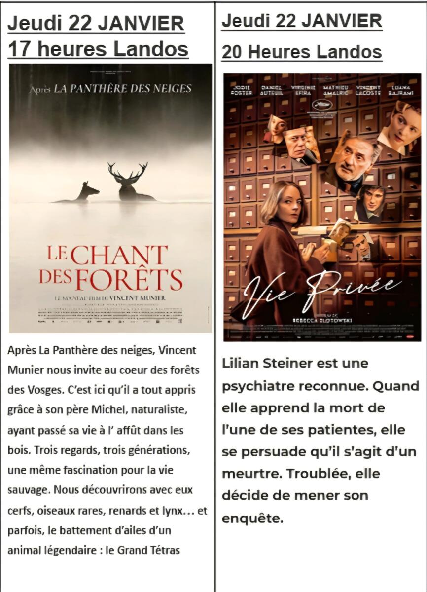 Ce jeudi 22 janvier,  2 séances cinéma vous sont proposées !