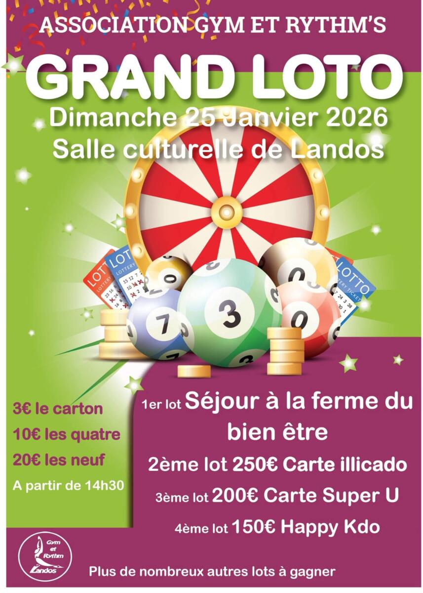 L'association Gym et Rythm vous propose son traditionnel grand LOTO le dimanche 25 janvier.