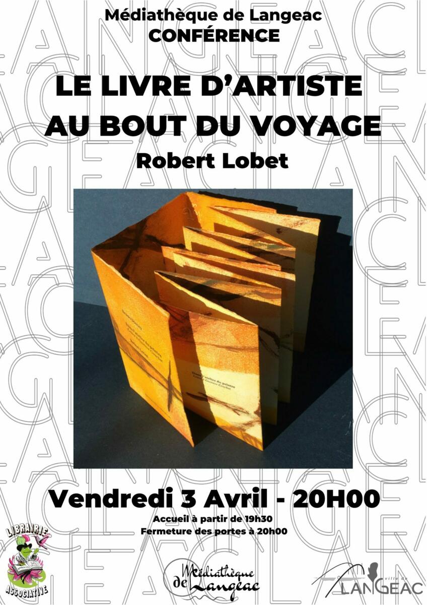 Dans la continuité de son exposition, Robert Lobet vous propose d'assister à une conférence "le livre d'artiste au bout du voyage", le Vendredi 3 Avril à 20 heures dans l'auditorium de la Médiathèque.