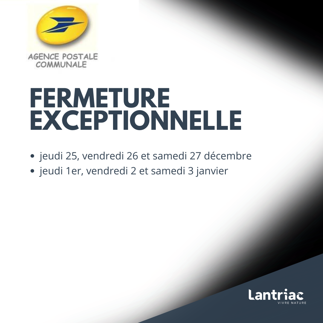 Fermeture exceptionnelle de l'Agence Postale Communale