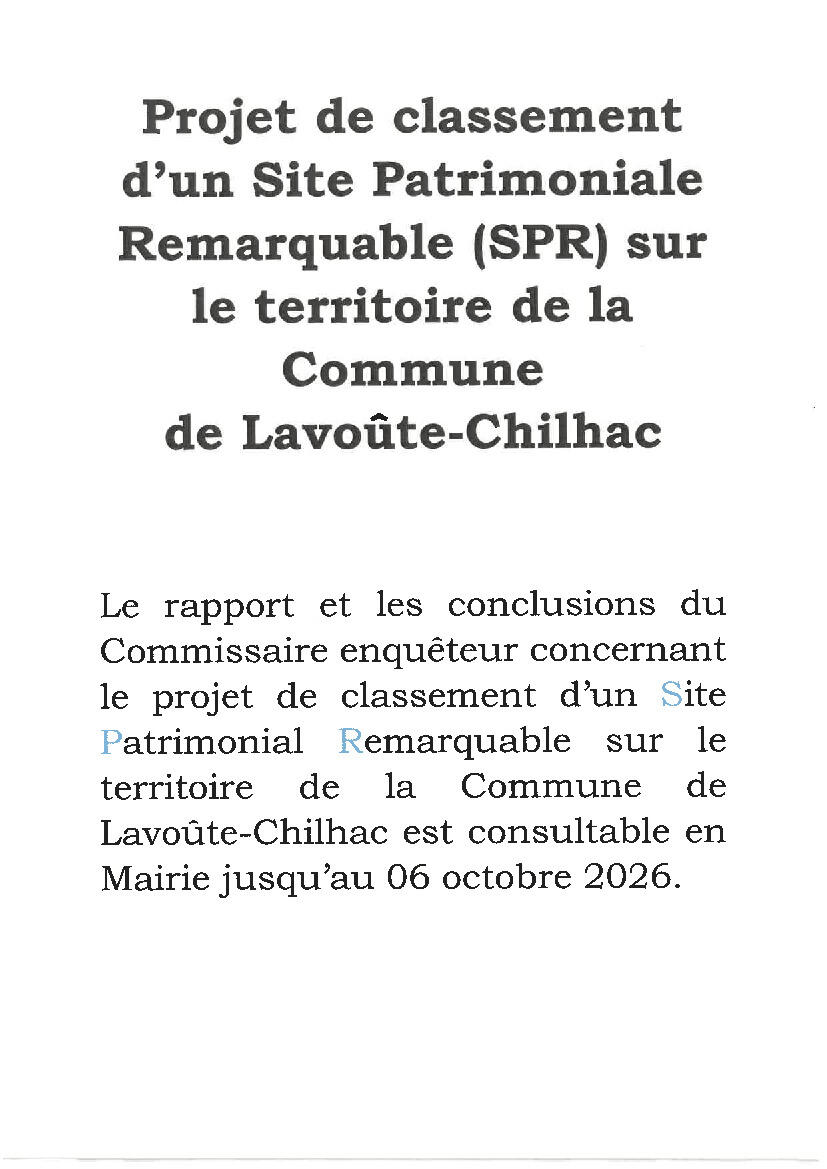Toute l'actualité de Mairie de Lavoûte-Chilhac