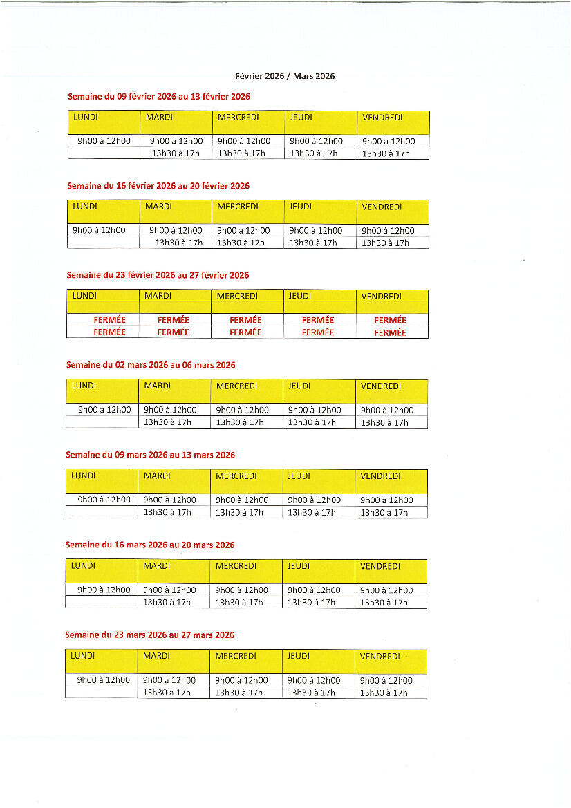 HORAIRES MAIRIE 12/03/2026 Février et Mars 2026 (Sous réserves de modifications de dernières minutes) Source : Mairie de Loudes