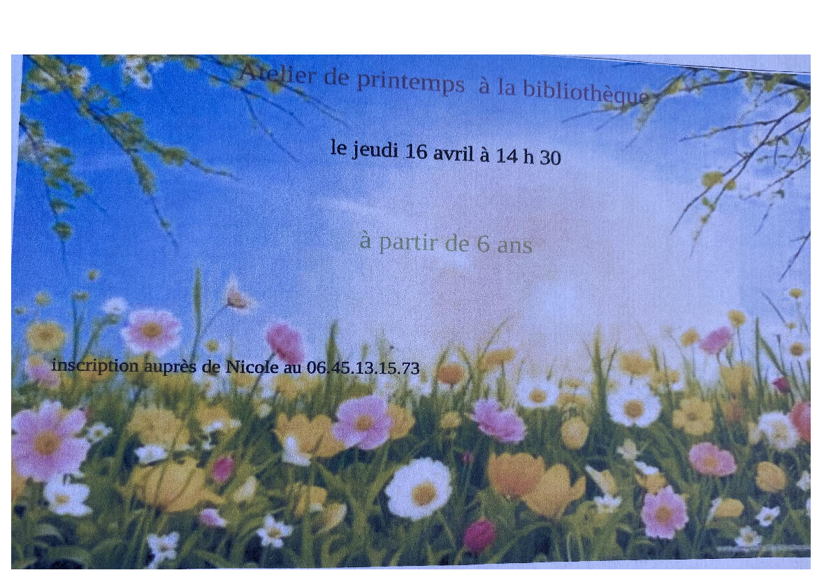 RAPPEL : Atelier de printemps à la bibliothèque