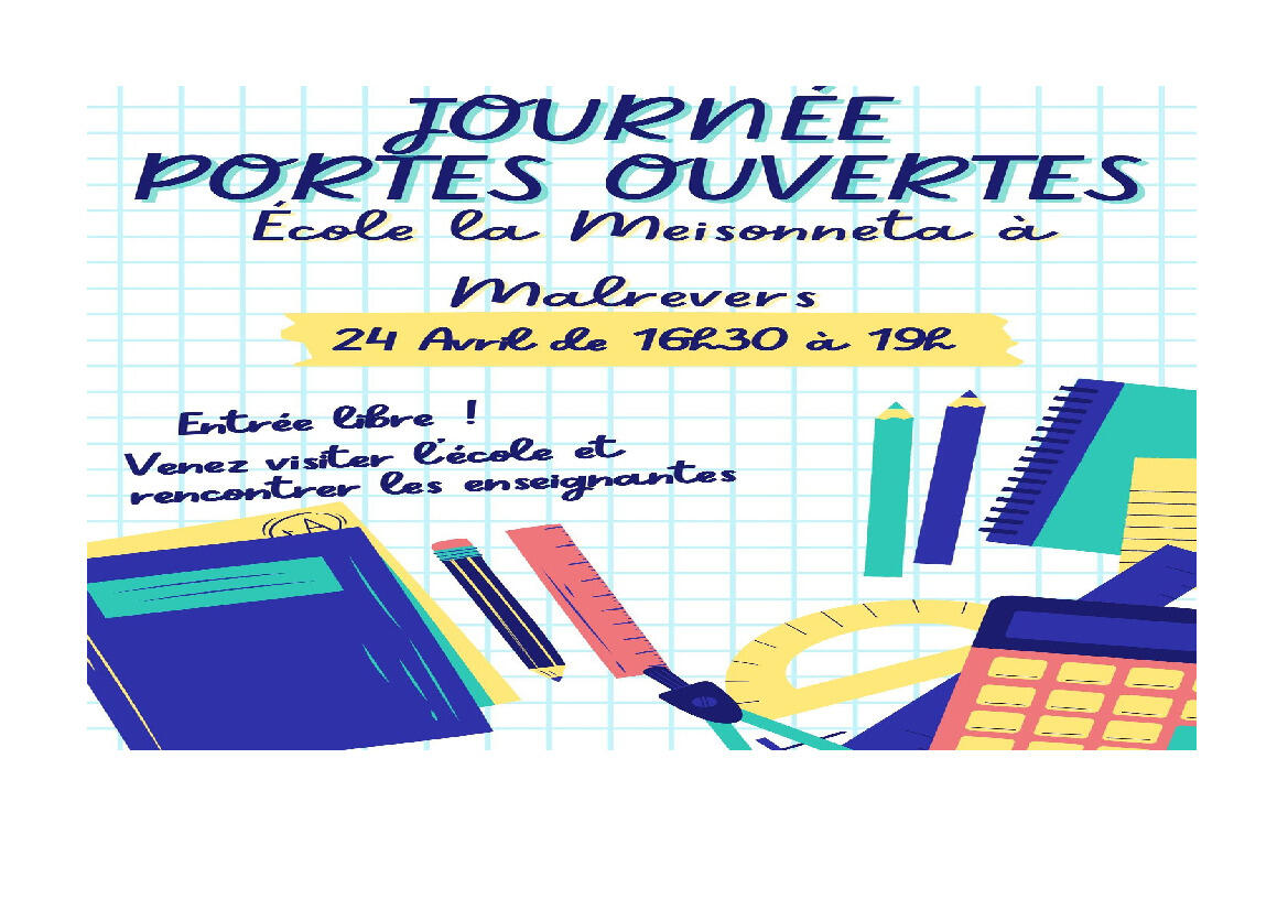 L’équipe de l’école de Malrevers a le plaisir de vous inviter à ses portes ouvertes qui se dérouleront :
