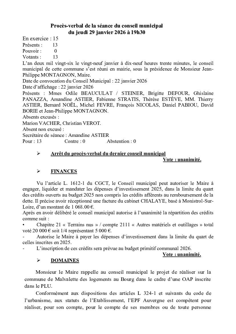 Procès- verbal du conseil municipal du 29 janvier 2026