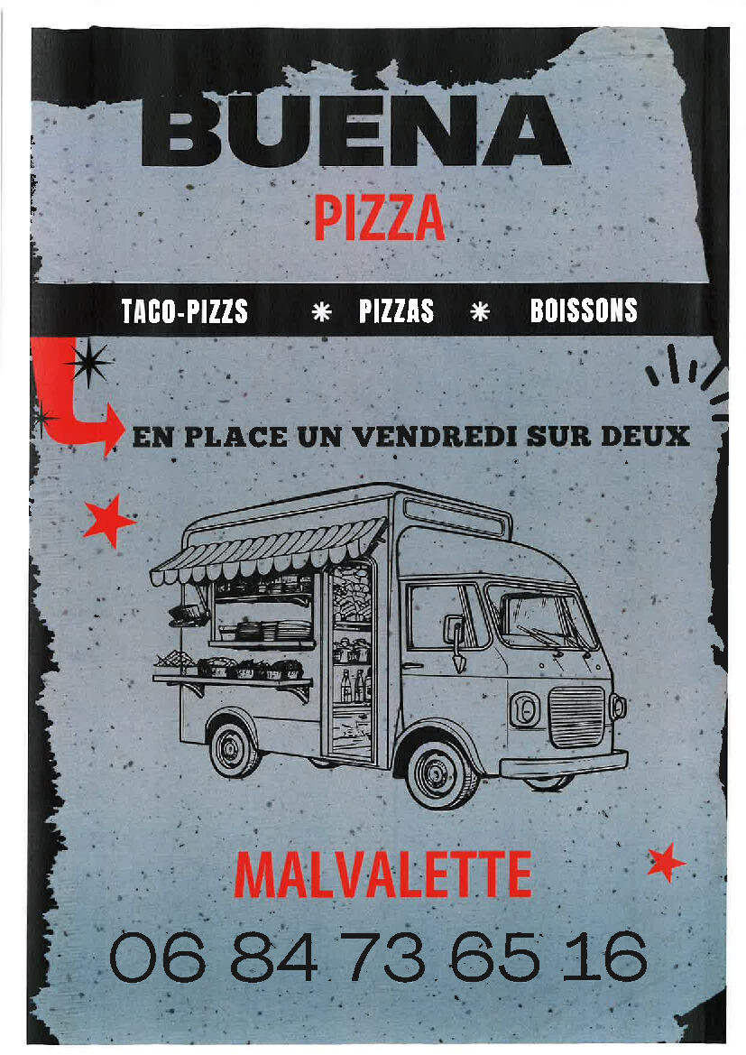Le camion "Buena Pizza" vous attend un vendredi sur deux Place de l'Eglise.