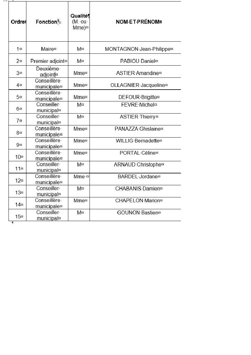 Suite au conseil municipal d'installation du vendredi 20 mars 2026 à 18h30, nous vous transmettons un extrait du tableau du conseil municipal de Malvalette.