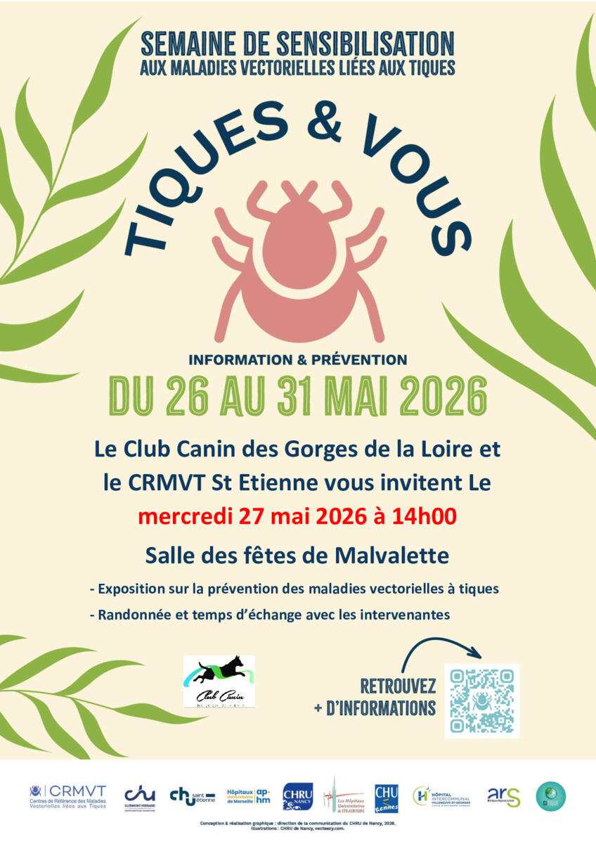 Le club canin a le plaisir de vous inviter à un moment d’information (sur les tiques) organisé par le service d’infectiologie du CHU de Saint-Etienne.