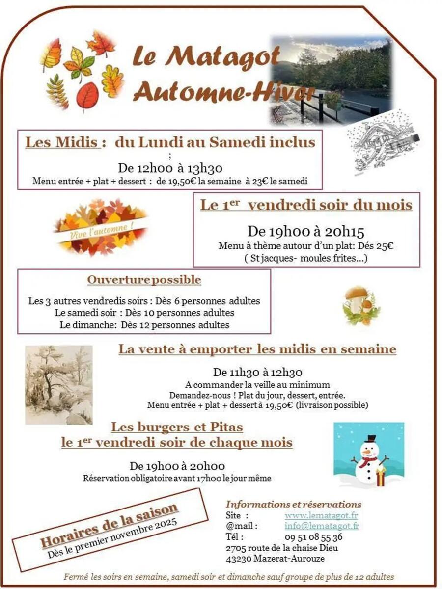 Le Matagot : horaires automne - hiver