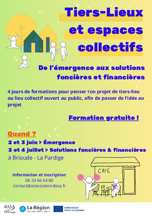 - deux formations de 2 jours sur l'émergence de tiers-lieux,