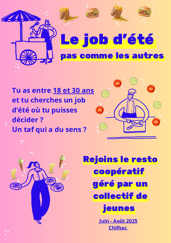Cet été, dASA propose à 4 personnes entre 18 et 30 ans de se tester dans la gestion coopérative d'un restaurant / snack à Chilhac.