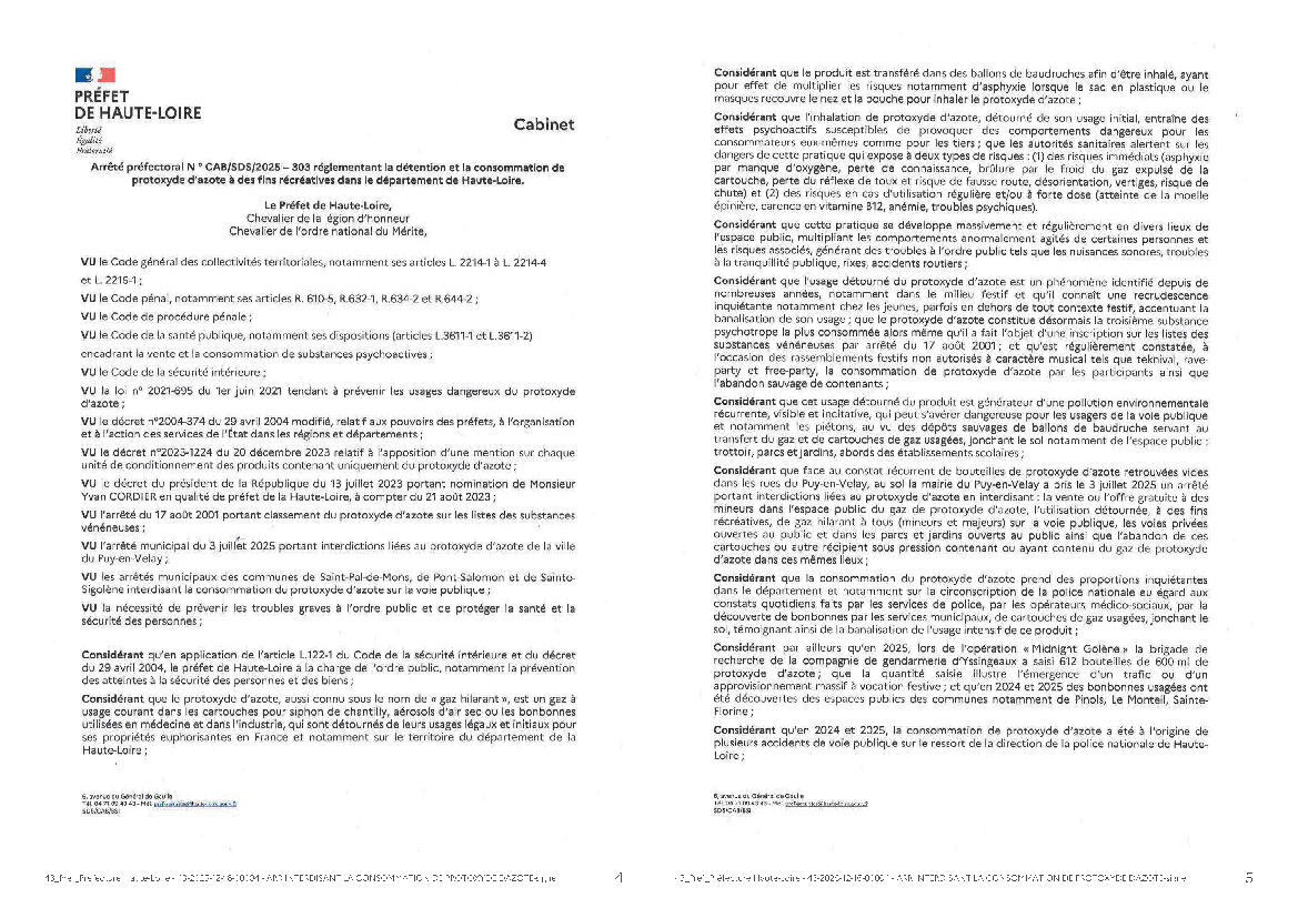 Arrêté Préfectoral protoxyde d'azote à des fins récréatives