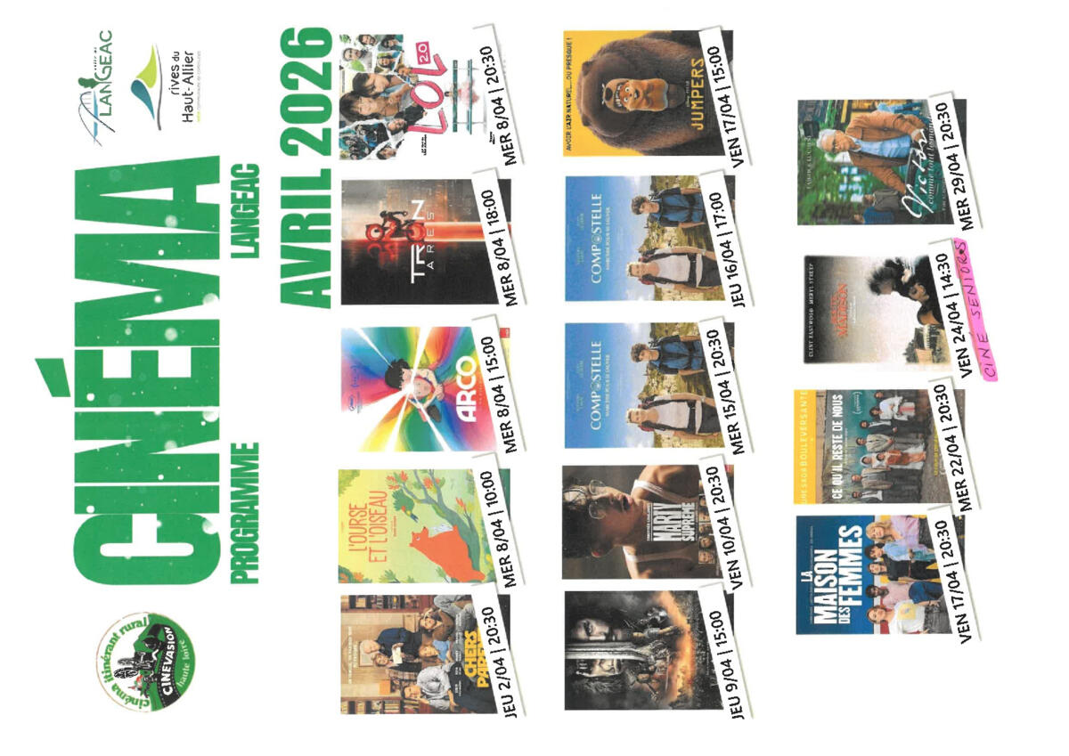 Veuillez trouver le programme du cinéma en Langeadois pour le mois d'avril.
