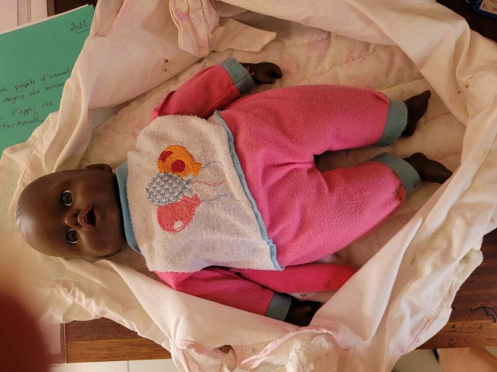 Objet Trouvé 20/01/2026 Des promeneurs nous ont gentiment ramené un poupon (voir photo), Vous pouvez venir le récupérer en Mairie de MEZERES le lundi et mardi de 8h à12h et de 13h à 16h30.