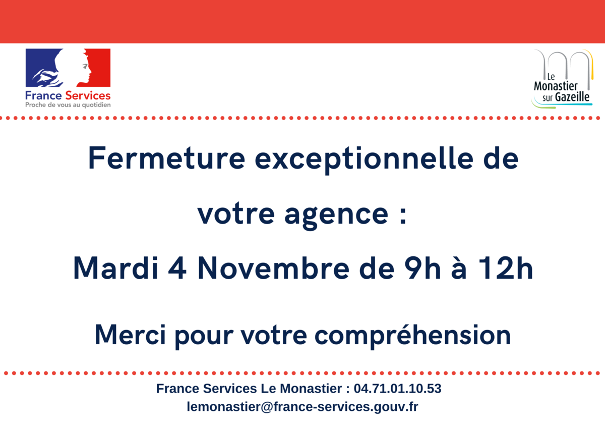 France Services - Fermeture le vendredi 28 Novembre