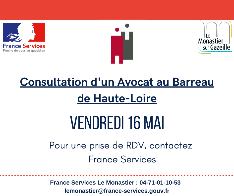 Rappel : Consultation d'un Avocat au Monastier - 16 Mai