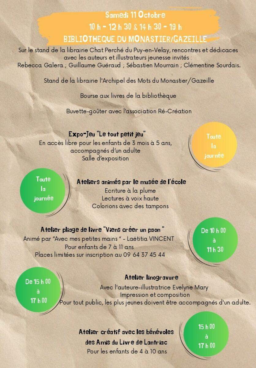 📣 Rappel : A l'occasion des Automnales du Livre Mézenc Loire Meygal, ne manquez pas les animations mises en place tout au long de la semaine sur le territoire de la communauté de communes et particulièrement celles prévues samedi 11 Octobre à la bibliothèque du Monastier !