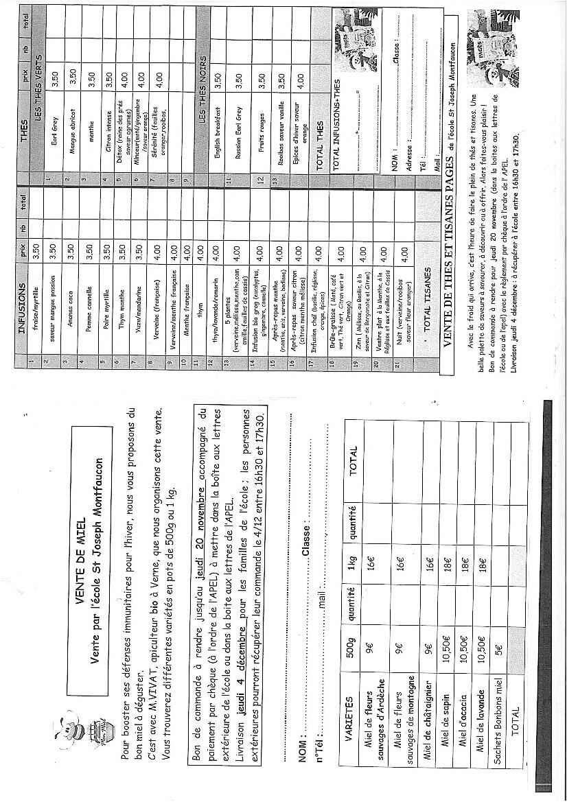 Ecole privée St Joseph Montfaucon : miel, thés, tisanes
