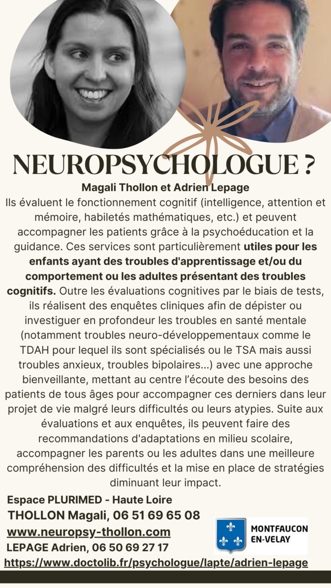 Votre mairie / Actualités / Espace PLURIMED - Montfaucon Neuropsychologue c'est quoi ?