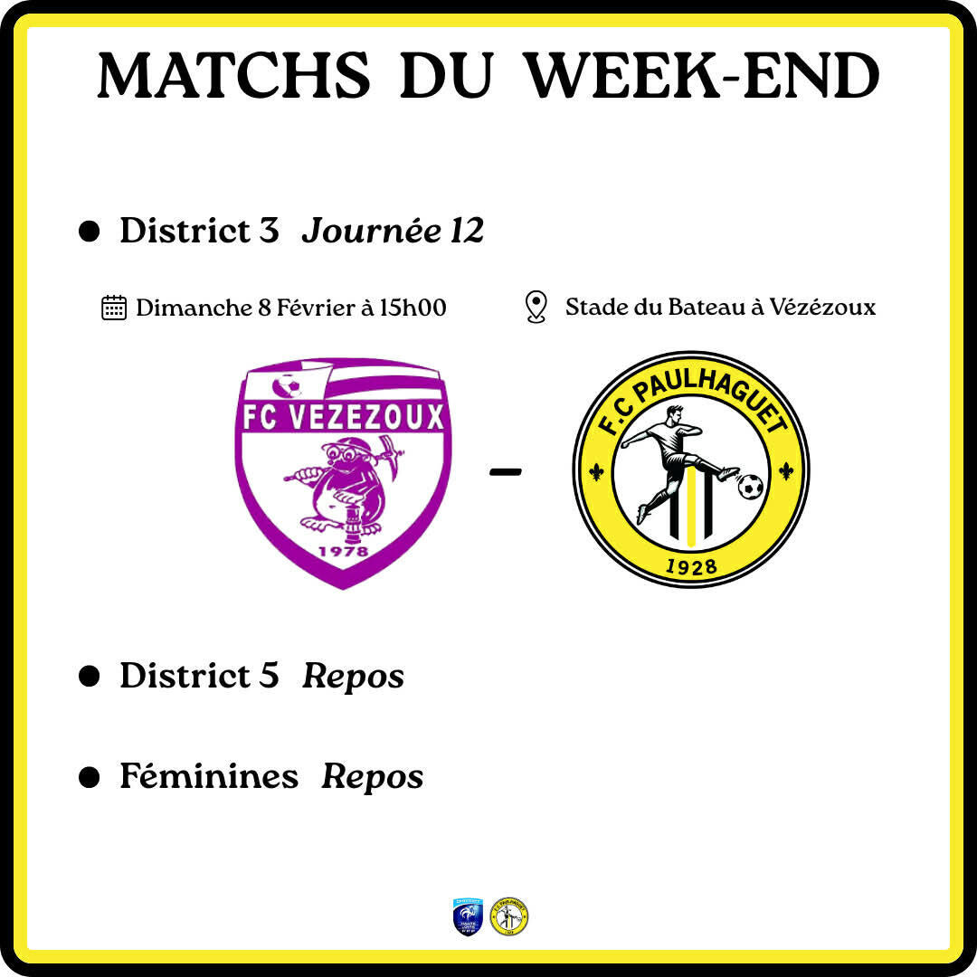 Matchs et tournois des équipes du FC Paulhaguet ce Week-end 05/02/2026 Matchs et tournois des équipes du FC Paulhaguet ce week-end