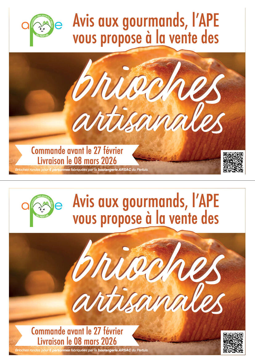 L’Association des Parents d’Élèves du Pertuis vous invite à participer à une action gourmande : notre vente de brioches !