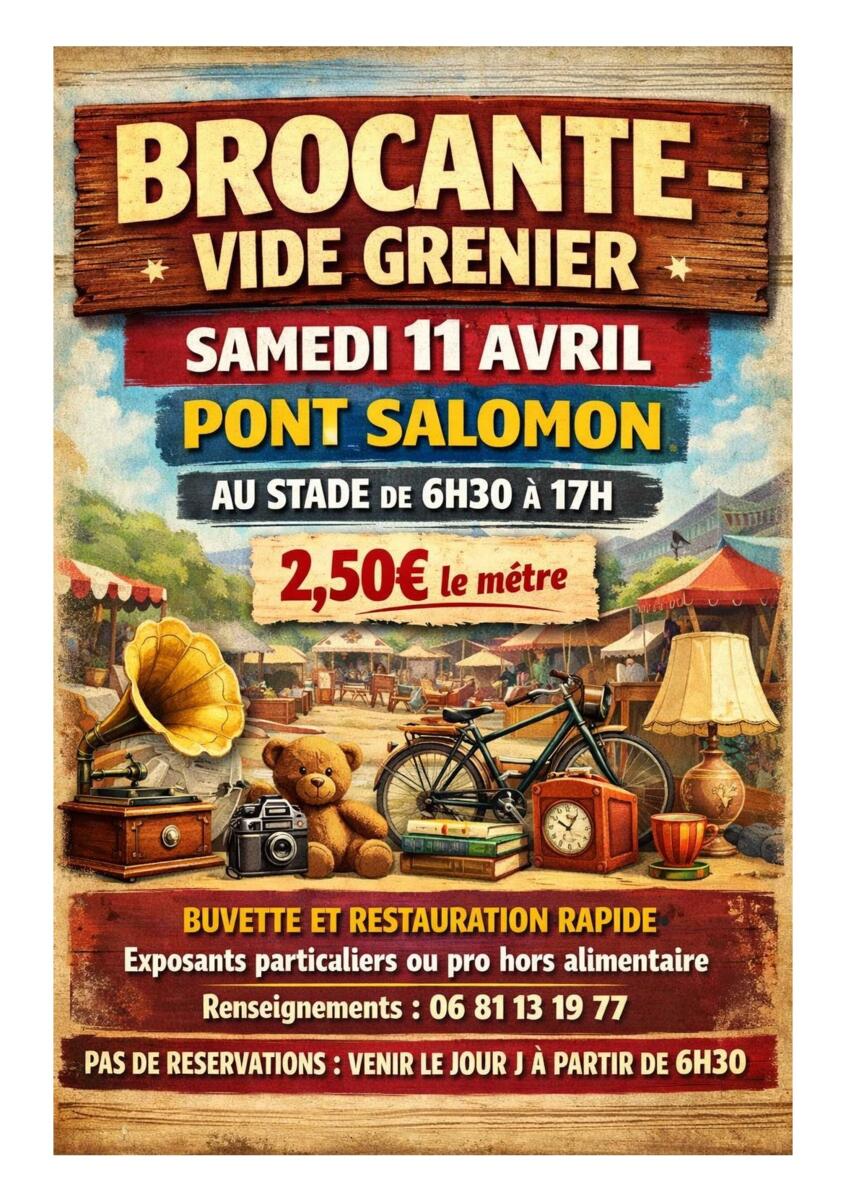 Pour les personnes souhaitant exposer pour la brocante vide grenier, il n'y aura pas de réservation à prévoir mais venir le jour J à partir de 6h30