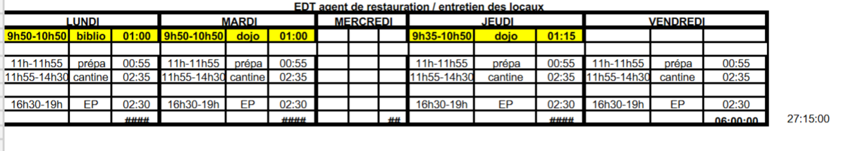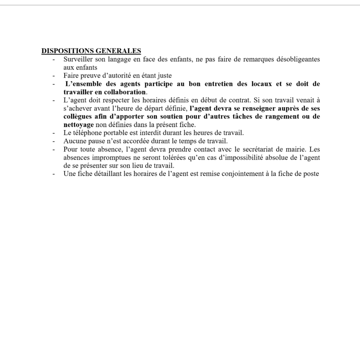 Ci joints la fiche de poste et les horaires de travail.