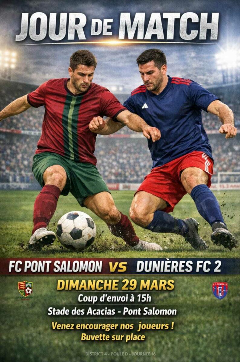 • FC PONT SALOMON vs DUNIERES FC 2 - Dimanche 29 mars - 15h - Stade de PONT SALOMON