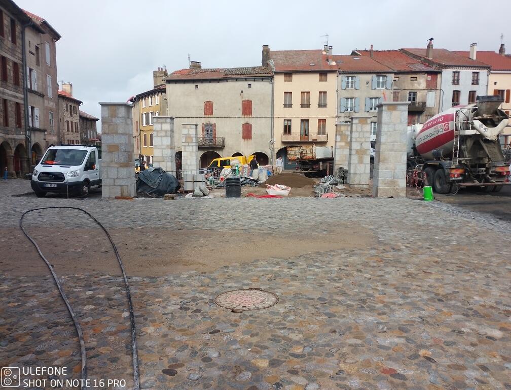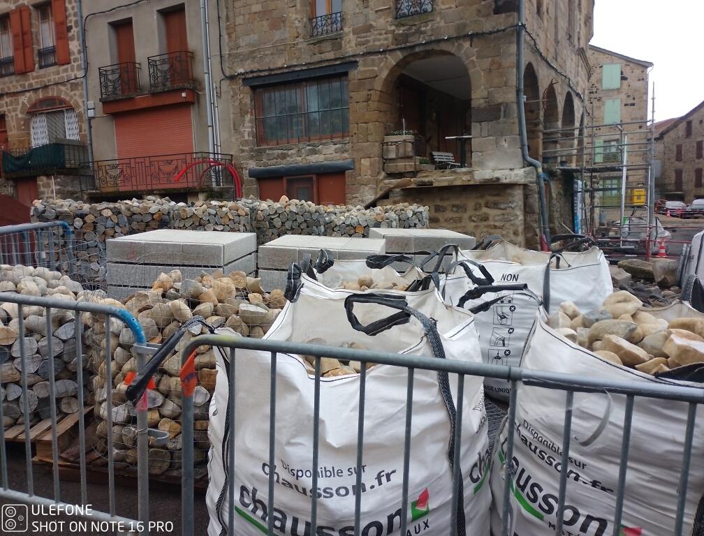 Dallage et calade (STPPV et COLAS), périphérie de la halle devant être terminée pour fin juin.