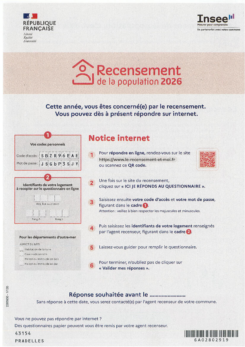 Votre mairie / Actualités / Recensement Numérique Permanence 22/01/2026-Mairie PRADELLES