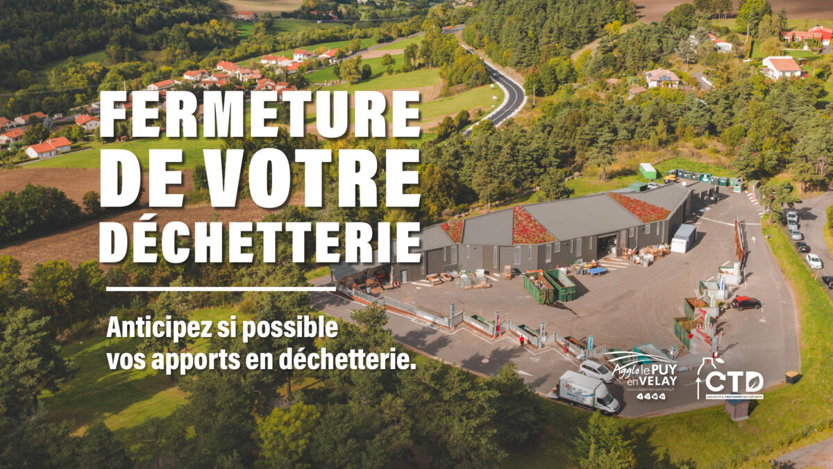 Fermeture De Vos Déchetteries Le Lundi 6 Avril 31/03/2026 Les déchetteries de la Communauté d'agglomération du Puy-en-Velay seront fermées le lundi 6 avril. Pensez à anticiper ou décaler vos apports. 🙏 Merci pour votre compréhension.