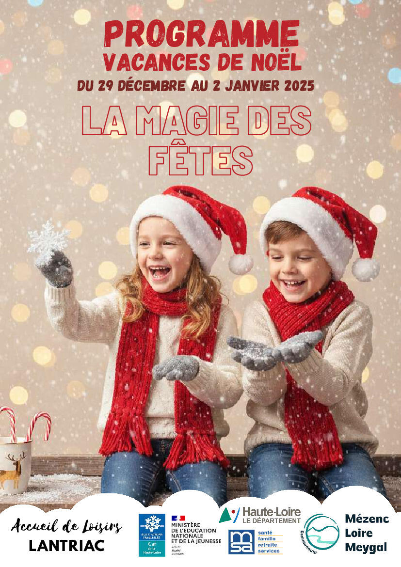 Programmes des centres de loisirs de Lantriac et du Monastier sur Gazeille du 29 décembre au 02 janvier.